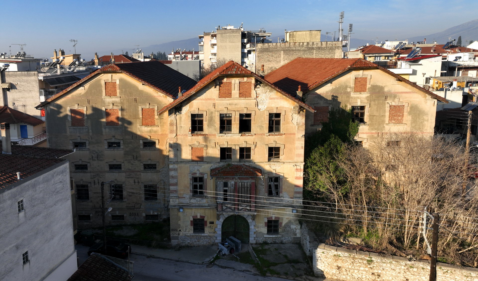 Πρώιμο δείγμα καπναποθήκης με πέτρινη κατασκευή και χαρακτηριστικά εμπορικής αρχιτεκτονικής της εποχής.